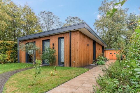 Het chalet is praktisch ingedeeld en ideaal voor wie houdt van rust en gemak. Bij binnenkomst stap je direct het gezellige woongedeelte in. Voorin bevindt zich een sfeervolle zithoek, met voldoende ruimte voor een werkplek – perfect voor wie thuis wil werken in een inspirerende omgeving.